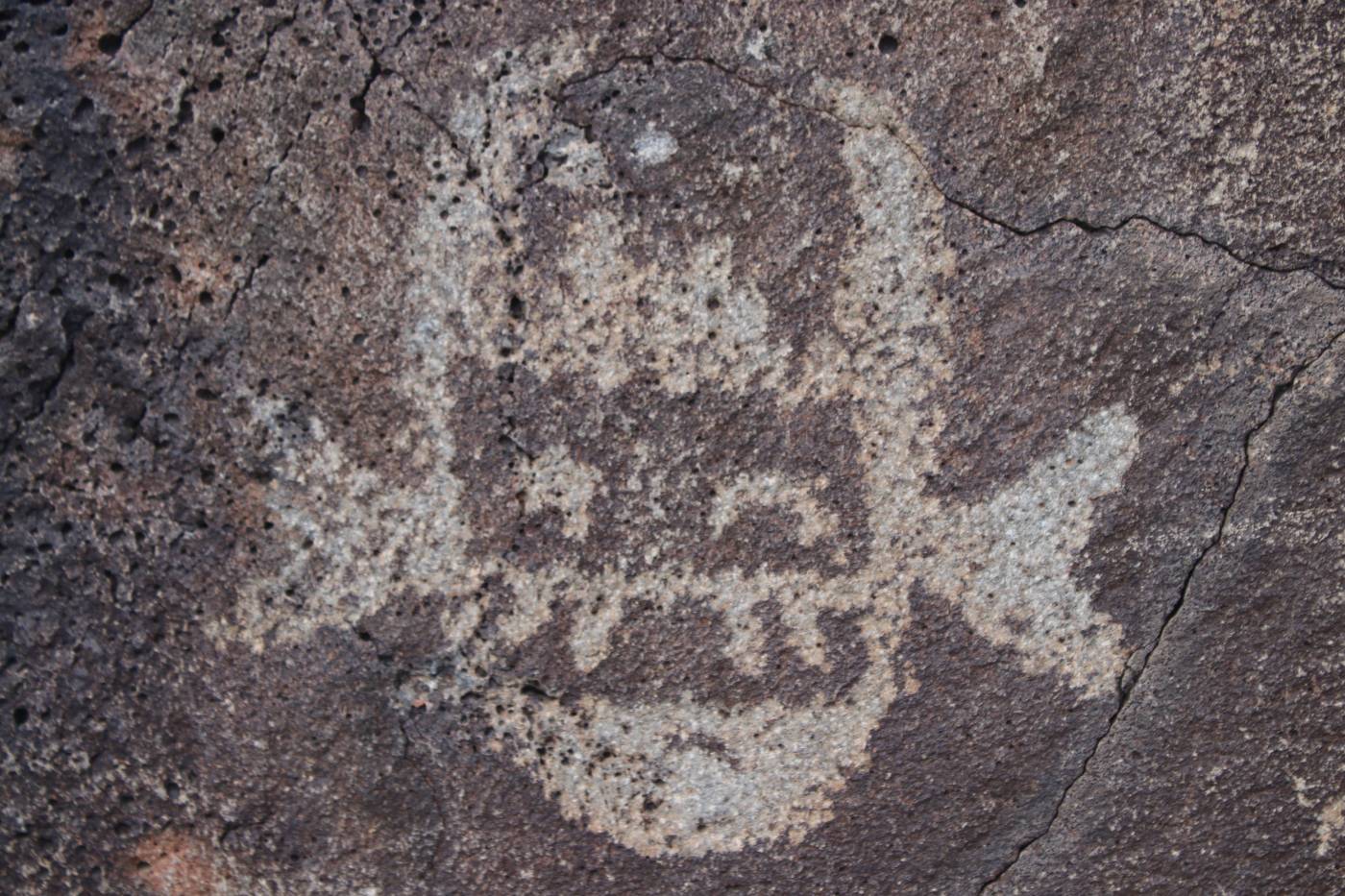 Les anciens habitants des pueblos n’ont pas laissés que des murs, ils ont aussi gravés des pétroglyphes d’où mon passage près d’Albuquerque pour visiter le Petroglyph National Monument (NM pour National Monument) . Ces pétroglyphes sont associés au style de la vallée du Rio Grande. Les pétroglyphes se distinguent des pictogrammes car les auteurs ont creusés la pierre (du basalte) et ne sont donc pas peints. La couleur jaune blanchatre des pétroglyphes se démarquent de l’aspect noir de la surface du basalte. Le Petroglyph NM a compté plus de 21 000 pétroglyphes sur trois sites dans ce secteur. Le problème est que des abrutis se sentent obliger de détériorer les œuvres.