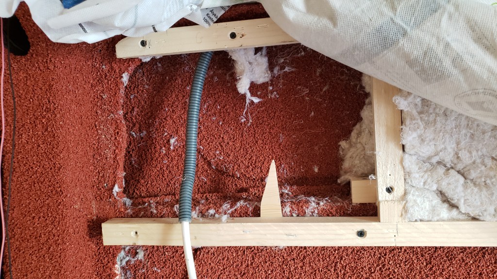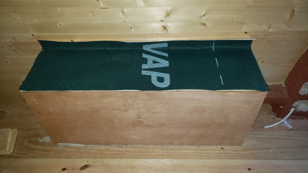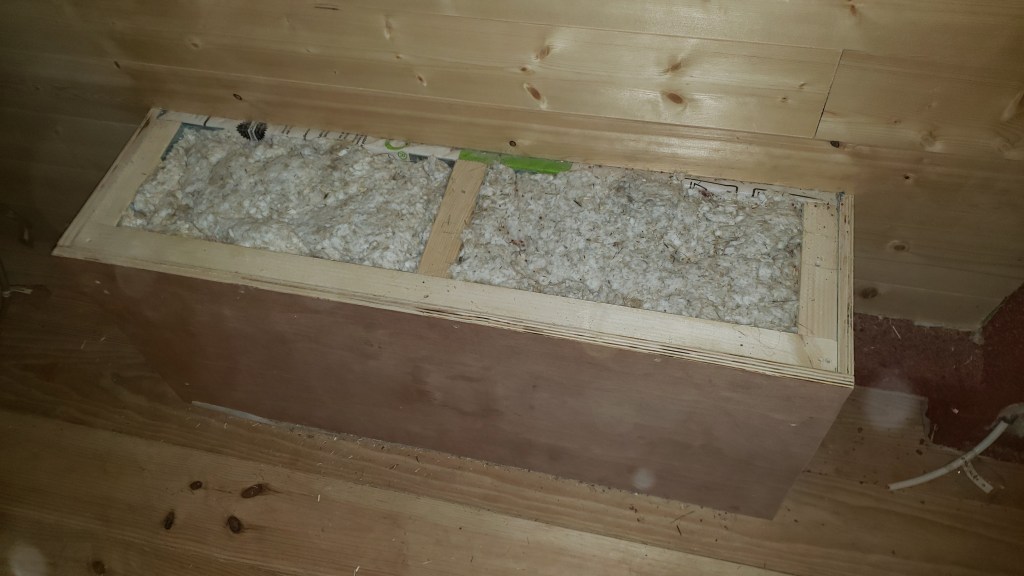 Je vais fermer les cadres avec du contreplaqué et par la même occasion remplir de laine pour isoler car ce sera un espace perdu dans tous les cas.