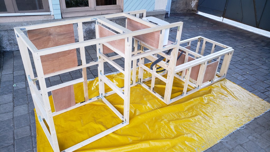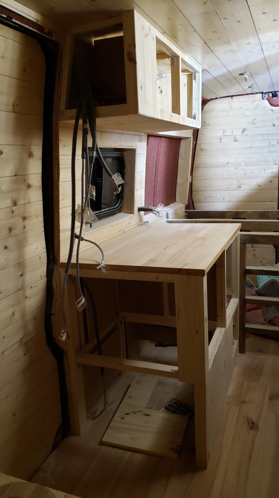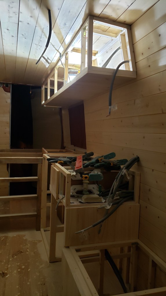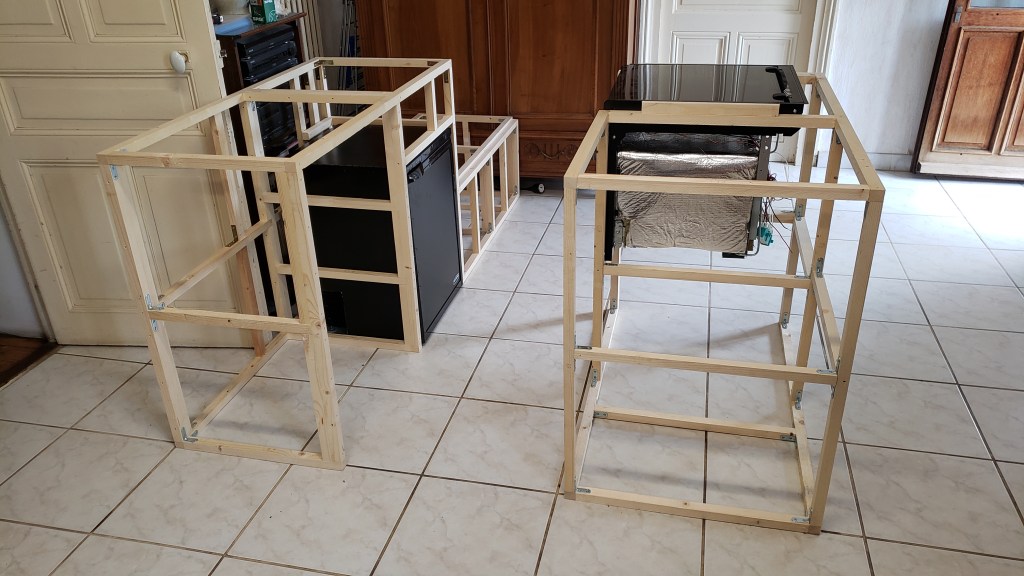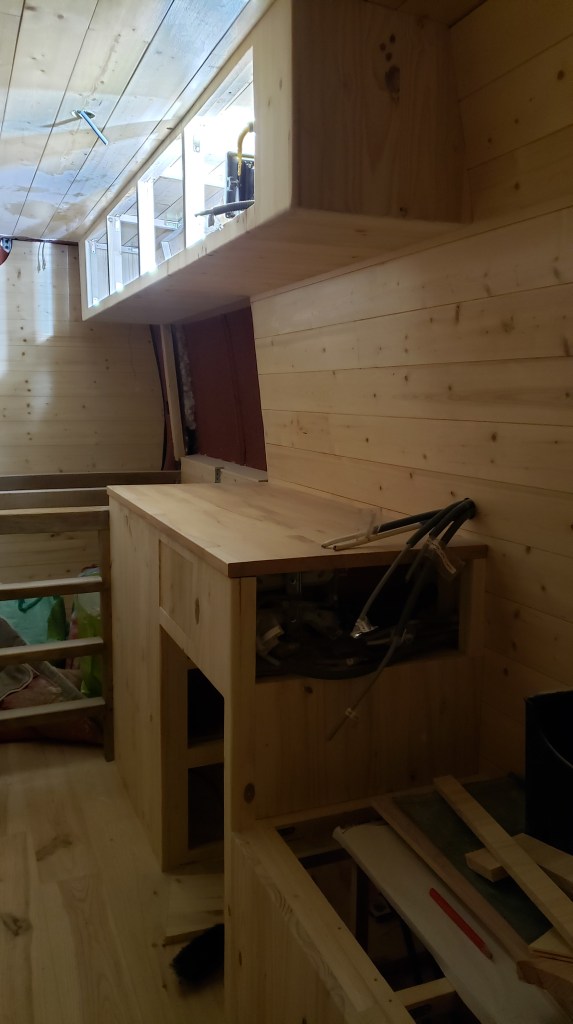 Entre les temps de sèchage du vitrificateur j’ai pu commencer à créer mes meubles pour la partie cuisine et la zone où je mettrais la banquette.