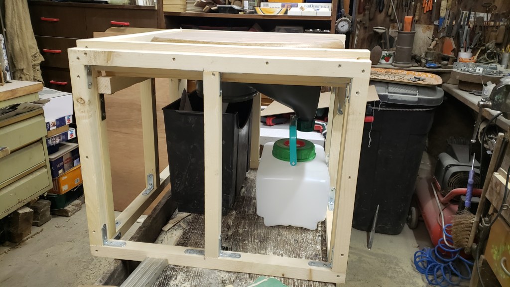 Comme à chaque fois, je modifie mes installations au fur à mesure et là pour l’occasion j’étais parti sur un tiroir avec les toilettes sèches mais ca me paraissait pas très pratique à mettre en place surtout que j’avais un autre emplacement en tête au départ. Dans tous les cas je pense que c’est une meilleure idée d’avoir modifié le siège en toilette.