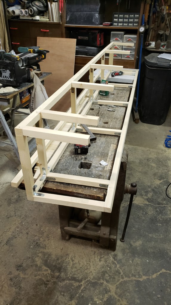 Après de multiples tentatives pour placer les tiroirs je vois enfin le bout du tunnel du bois. Dans tous les cas plus qu’à fixer les coulisses et la magie peut s’opérer avec des plans de travail presque aux bonnes dimensions.