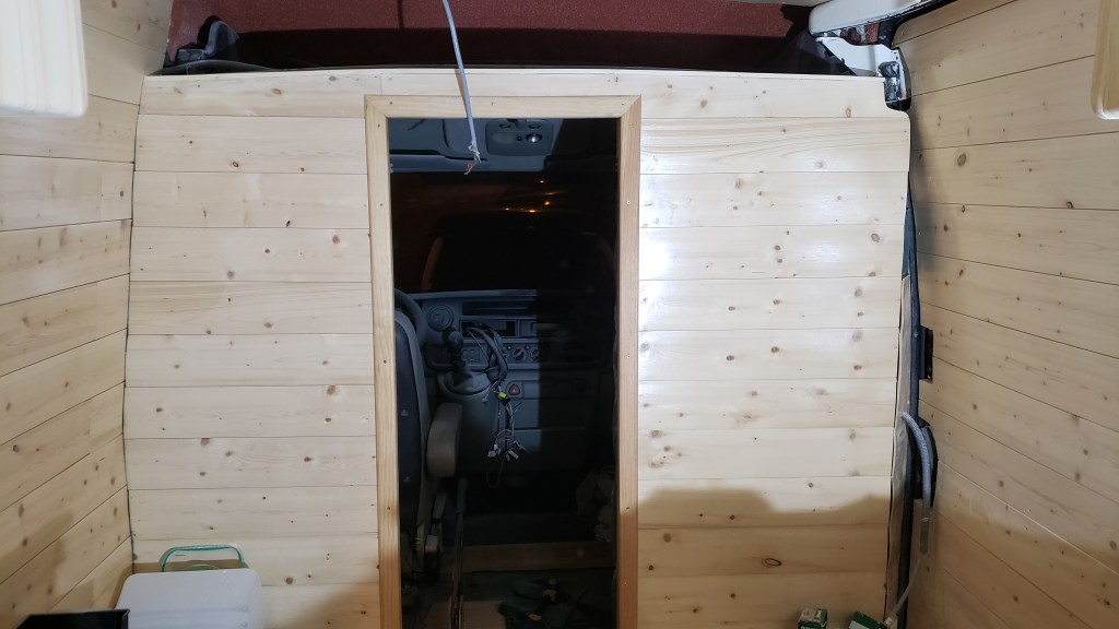 Les meubles vont permettre de voir l’intérieur du fourgon d’un oeil nouveau au delà du fait que j’ai pris le temps de lasurer le lambris et vitrifier le plancher. Pour le lambris c’êtait long mais le rendu est vraiment bien.